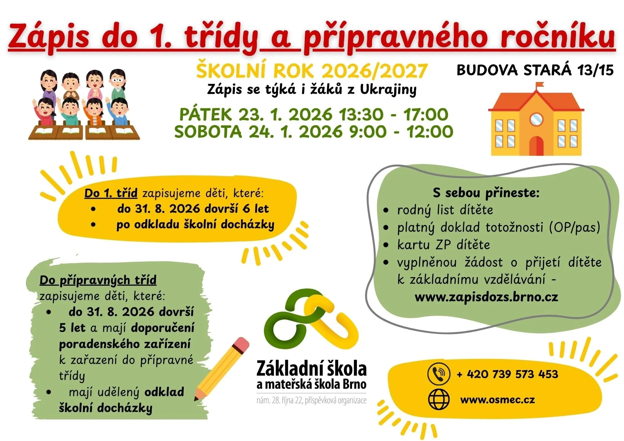 Informace k zápisu do 1. třídy a přípravného ročníku